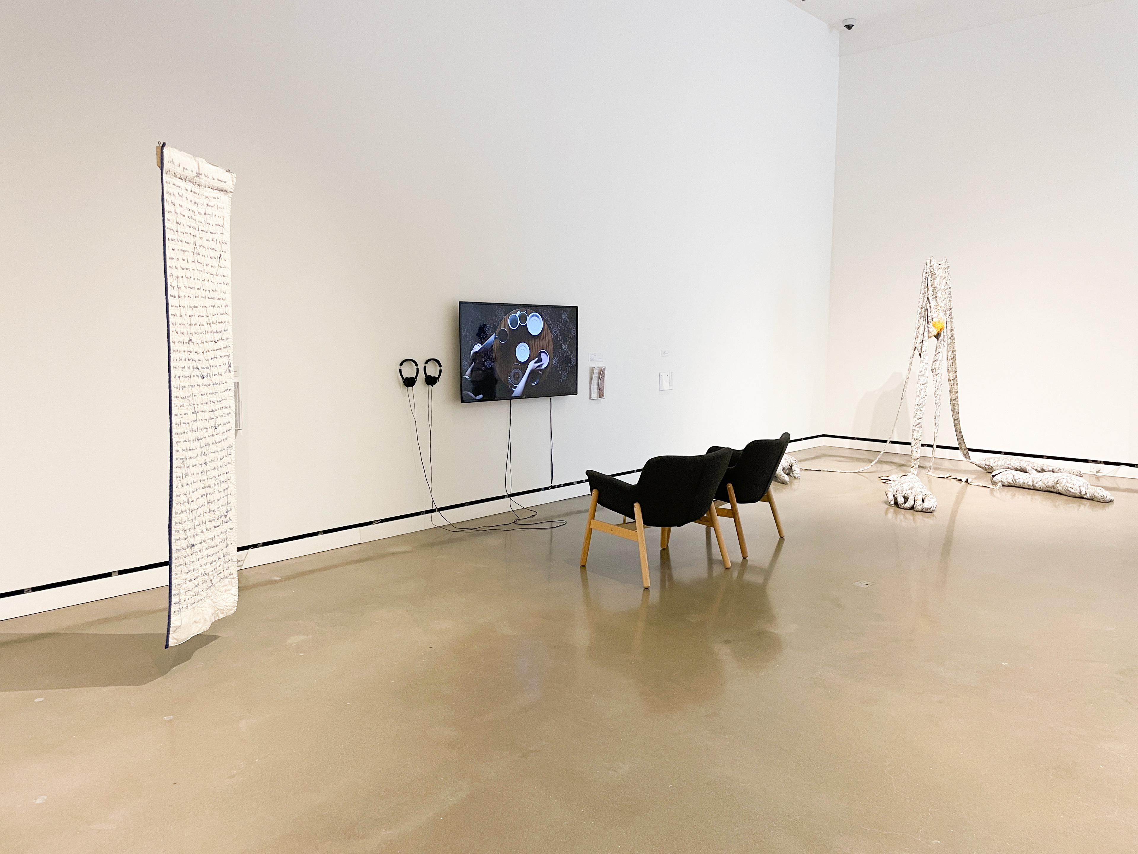 Visibility and connection are the conceptual and physical frameworks that inspired the gallery’s layout. As you enter, you encounter artworks that portray the unspoken. Self Portrait - Multiple Sclerosis and My Body and the series Students with MS by May Ling Kopecky, the multimedia soft sculptures Fatigue by Anna Cowley Ford, Recovery Position by Anna Hite, and the video series Exit Strategies by choreographer and filmmaker Kym McDaniel take you on a journey through the demystification of invisible symptoms and the recognition of unnoticed aspects of being ill.