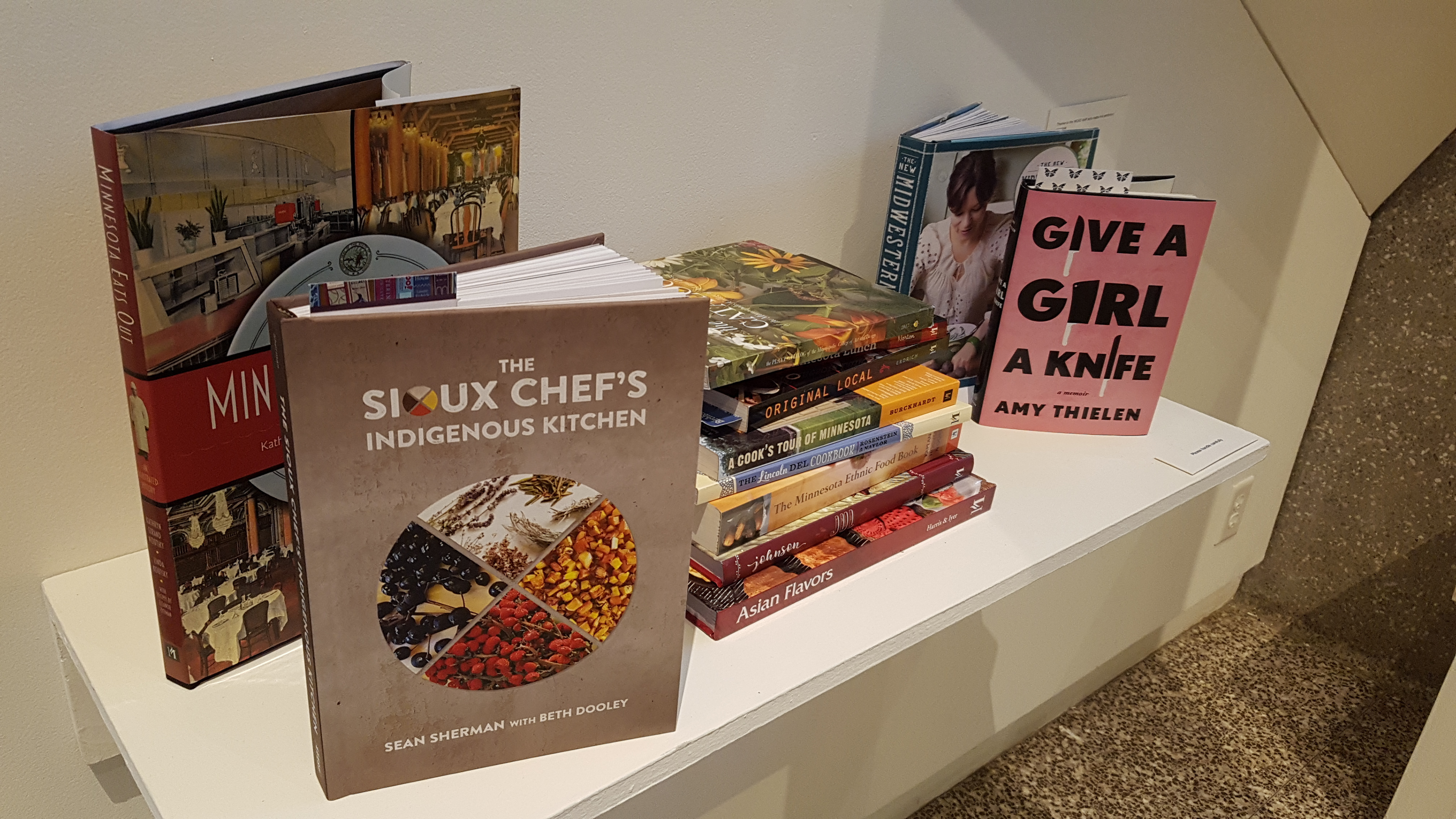 Alongside the exhibition’s display area there will be a reading area where gallery visitors are welcome to sit and browse through over a dozen books and cookbooks, many of which are published by the Minnesota Historical Society. Outside of the gallery space there are several food-themed public art installations, including a banner project titled Consumed, by Rosemary Williams, that runs along 26th Street and two works in the MCAD Sculpture Garden, one by Joel Terry and another by Julie Benda.